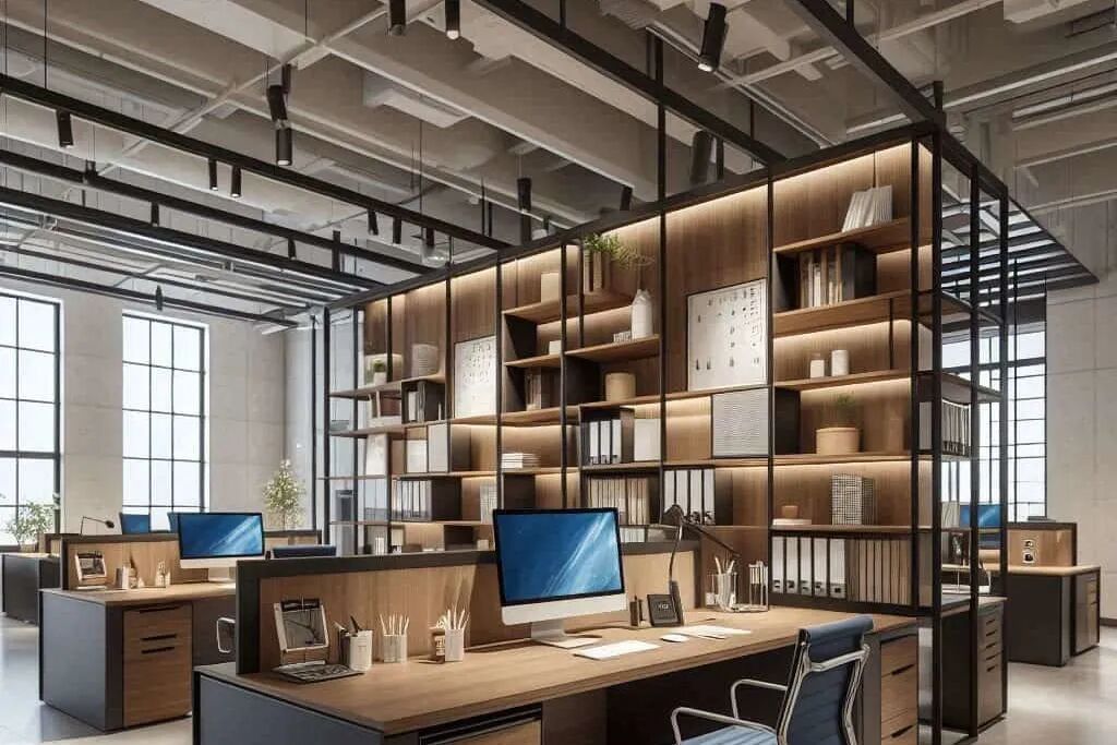 隱私與安全性:辦公區(qū)域的隔斷設(shè)計注重隱私保護,可采用玻璃隔斷、木質(zhì)屏風或軟包隔斷等,既保證空間通透性,又滿足私密需求。重要文件存儲區(qū)、財務(wù)室等區(qū)域會加強安全措施,如安裝監(jiān)控設(shè)備、防盜門等。