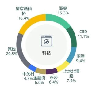 科技企業(yè)在望京酒仙橋及亞奧商圈發(fā)力明顯,此次沖擊并未影響到此前該區(qū)域企業(yè)擴(kuò)張的需求,仍有多數(shù)企業(yè)抓住機(jī)遇進(jìn)行辦公品質(zhì)的提升、改善辦公環(huán)境或降低租賃成本;亞奧、CBD也同樣吸引了多數(shù)科技企業(yè)的入駐,上述商圈成交占比約為全市的五成。